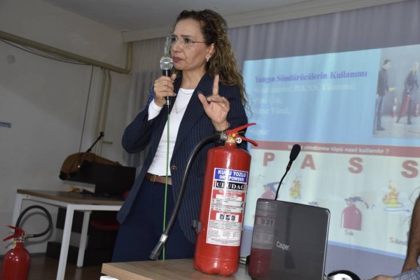 Eğitimde yangının oluş nedenleri, yangın türleri, bireysel ve toplumsal sorumluluklar ile acil durumlarda panik yapmadan doğru karar vermenin önemi de vurgulandı. Öğrenciler bu önemli teorik eğitimle olası bir yangın durumunda nasıl davranmaları gerektiğini öğrenme fırsatı buldu.
