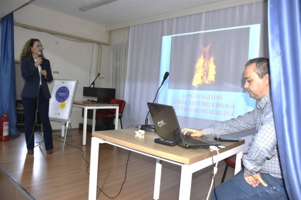 Karacabey Belediyesi Afet İşleri Müdürlüğü, Ulviye Matlı Fen Lisesi’nin talebi üzerine 10. ve 11. sınıf öğrencilerine yönelik “Yangın Eğitimi” düzenledi. Okulun #ErasmusDays programı kapsamında gerçekleştirilen eğitim, Eylül ayı sonunda Karacabey’in Ekmekçi ve Akçasusurluk Mahalleleri arasında meydana gelen orman yangını sonrasında öğrencilerin artan farkındalık talebi üzerine hayata geçirildi.