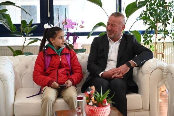 Şehit Serkan Şahin Ortaokulu’nun 7. sınıf öğrencisi Hazal Emergen, 23 Nisan Ulusal Egemenlik ve Çocuk Bayramı kapsamında düzenlenen resim yarışmasında ilçe birinciliğini kazandı. Başarılı öğrencinin gururu, ilçede büyük bir sevinçle karşılandı. Belediye Başkanı Fatih Karabatı, Hazal Emergen’i makamında ağırlayarak bu anlamlı başarısından dolayı kendisini tebrik etti. Başarılı öğrenciyi makamında misafir eden Belediye Başkanı Fatih Karabatı, Hazal’a bu anlamlı başarısından dolayı bir resim şövalesi hediye etti.