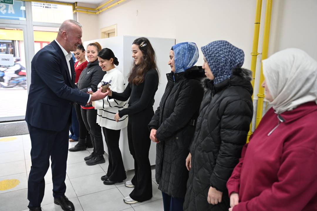 Öte yandan Belediye Başkanı Fatih Karabatı, 8 Mart Dünya Emekçi Kadınlar Günü dolayısıyla belediye hizmet binası ve bağlı birimleri ziyaret ederek kadın çalışanlara çiçek takdim etti.