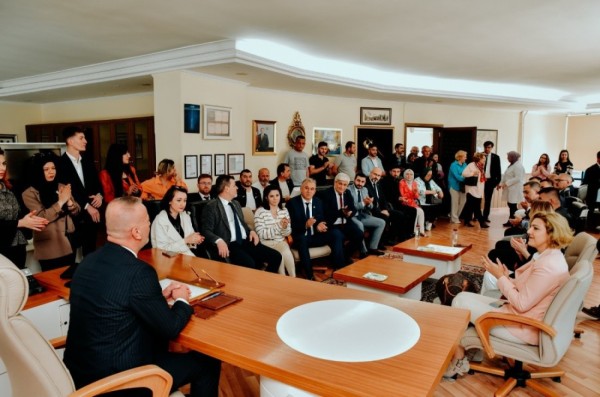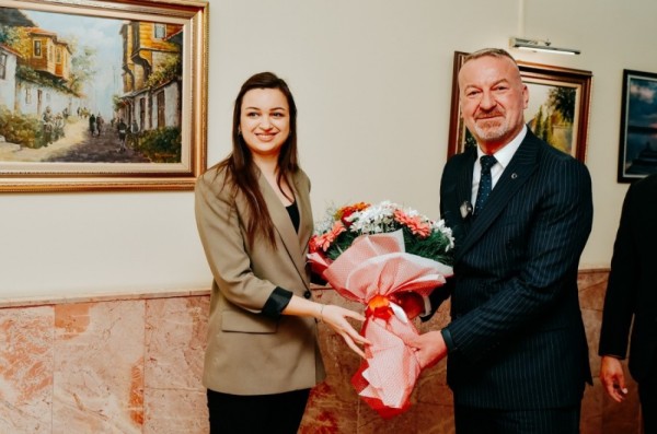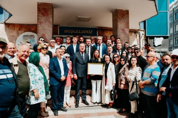 Yeni adliye binasındaki İlçe Seçim Müdürlüğü’ne gelerek mazbatasını teslim alan Başkan Karabatı'ya eşi Deniz Karabatı da eşlik etti.