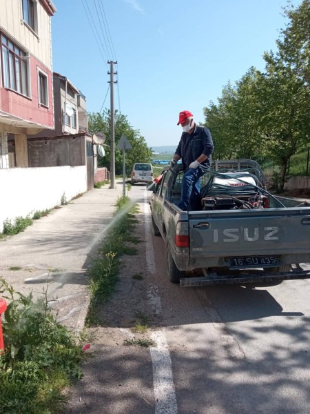 Temizlik İşleri Müdürlüğü koordinesinde yürütülen çalışmalarda, ilk olarak yol kenarlarında ve kaldırımlarda görüntü kirliliği oluşturan, vatandaşların geçişini zorlaştıran yabani otlar motorlu tırpanlarla kesildi. Ardından, yabani otların yeniden çıkmasını önlemek amacıyla özel bitki ilaçları ile ilaçlama işlemi yapıldı.