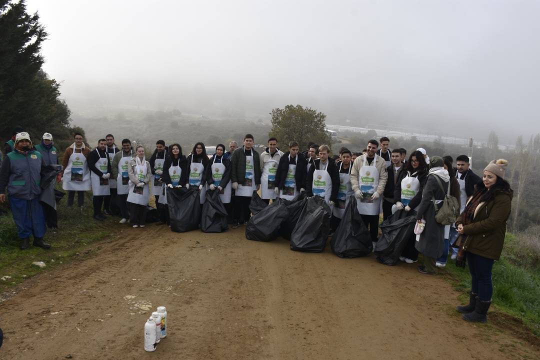 Karacabey’in Kıranlar Mahallesi’ndeki ormanlık alanda yapılan etkinliğe katılan öğrenciler, çevreye gelişi güzel atılan özellikle tarım ilacı kutuları başta olmak üzere, doğaya zarar veren çeşitli atıkları topladı. Yetkililer bu tür atıkların toprağa ve su kaynaklarına kalıcı zarar verdiğini, hatta içme sularına karışarak insan sağlığını tehdit edebileceğini vurguladı.