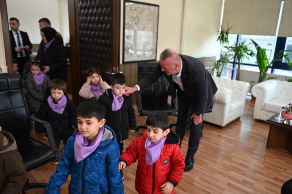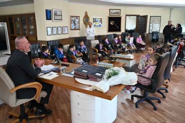 Ziyaretin sonunda minik öğrencilere hediyeler dağıtıldı ve hatıra fotoğrafları çekildi. Çocukların belediye binasından ayrılırken yüzlerinde mutluluk ise görülmeye değerdi.
