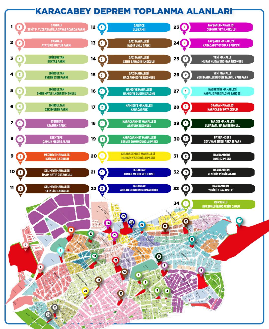 Karacabey'de bulunan Acil ve Afet durumlarında erişilebilecek Toplanma Yerleri ile ilgili görselden ve aşağıdaki dokümandan bilgi edinebilirsiniz.