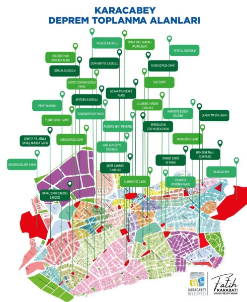 Afetlere karşı hazırlıklı olmak hepimizin sorumluluğudur. Karacabey genelinde belirlenen Deprem Toplanma Alanları, olası bir afet anında vatandaşlarımızın güvenle toplanabileceği güvenli bölgeler olarak planlanmıştır.
