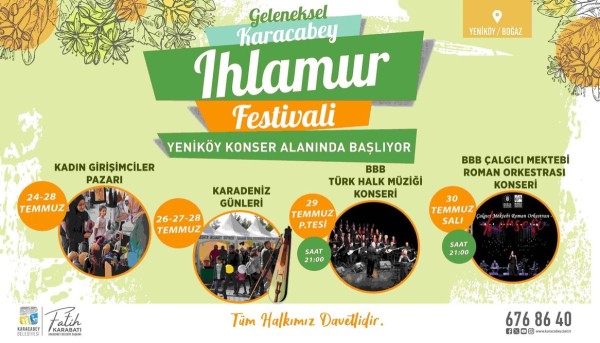 Karacabey Belediyesi tarafından her yıl geleneksel olarak düzenlenen ve yoğun ilgi gören Ihlamur Festivali’nin bu yıl da aynı coşkuya gerçekleşmesi bekleniyor. 6 gün sürecek olan festival, ilçenin tatil bölgesi olan Yeniköy Meydanında gerçekleşecek. 24 Temmuz Çarşamba günü saat 16.00 da Karacabey Kadın Girişimciler Alışveriş Şenliği ile başlayacak festival kapsamında 26,27 ve 28 Temmuz tarihlerinde ise Karadeniz rüzgârları esecek. 3 gün sürecek Karadeniz Günleri ise ayrıca kurulacak yöresel ürün pazarının yanı sıra her akşam birbirinden farklı sanatçıların sahne alacağı konserlerle yoğun bir şekilde geçecek.