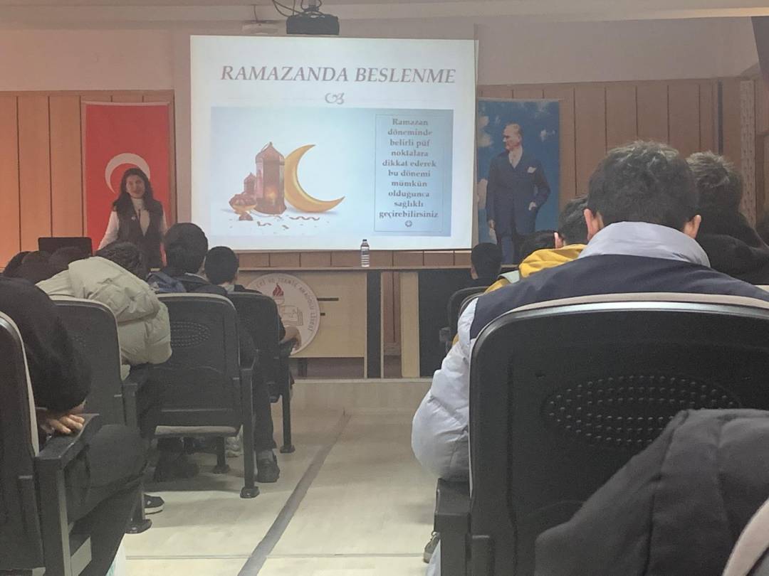 Diyetisyen Özge Gündoğan, geçtiğimiz günlerde Karacabey Mesleki ve Teknik Anadolu Lisesi öğrencileriyle bir araya geldi. “Adölesan Dönemde Sağlıklı Beslenme” ve “Ramazanda Beslenme” konulu seminerde gençlere; büyüme ve gelişme çağında doğru beslenmenin önemi, sınav dönemlerinde beslenme düzeni, oruç tutarken dikkat edilmesi gereken hususlar ve günlük su tüketimi gibi konularda detaylı bilgiler aktarıldı.