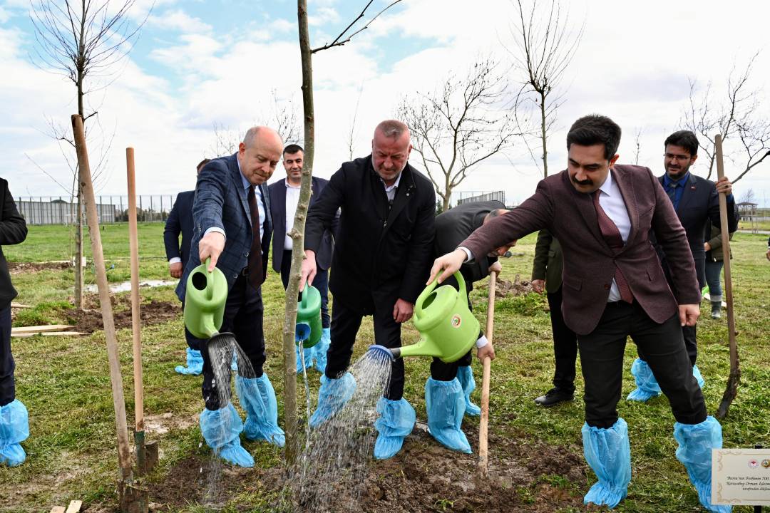 Etkinlikler, Karacabey’in muhtelif noktalarında gerçekleştirilen fidan dikimleriyle devam ederken, son olarak Karacapark’ta düzenlenen törene ilçe protokolü yoğun katılım gösterdi. Karacabey Kaymakamı Cemalettin Yılmaz, Belediye Başkanı Fatih Karabatı, Cumhuriyet Başsavcısı Batuhan Kılınç, Belediye Başkan Yardımcısı İlyas Aksoy, İlçe Milli Eğitim Müdürü Muhammet Ali Erbir, İlçe Müftüsü Abdullah Karaca ve Karacabey Orman İşletme Müdürü Serdar Yazıcı’nın katıldığı etkinlikte, dualar eşliğinde 20 fidan toprakla buluşturuldu.