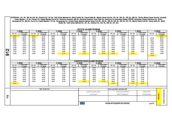 Bu talepler doğrultusunda, Bursa’dan Karacabey’e çalışmaya gelen ve mevcut sefer saatleri nedeniyle mağdur olduklarını bildiren vatandaşlar için 901 numaralı otobüs hattı, mevcut sefer başlangıç saati 07.30’dan 07.00’a alındı. Aynı zamanda akşam saatlerinde işten veya derslerden dönen öğrenci ve diğer vatandaşlar için 914 ve 912 numaralı şehir içi minibüs hatlarının da çalışma saatleri güncellenerek 22.00’ a kadar uzatıldı.