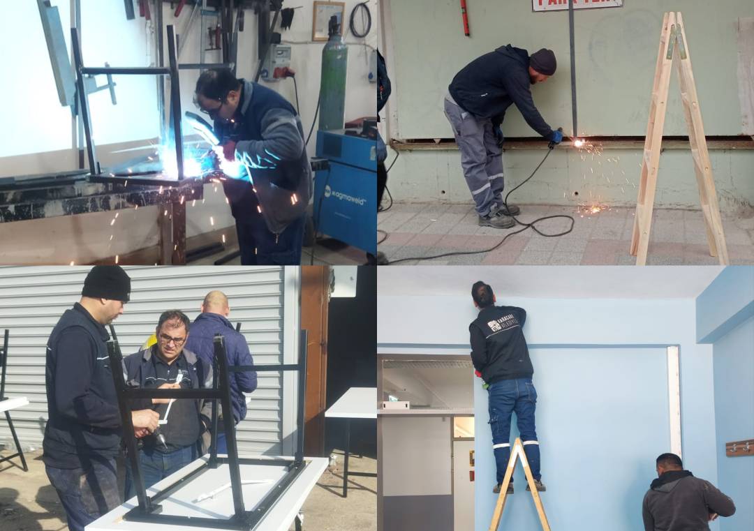 Ahşap işlerinde de aktif rol alan ekipler; dolap, masa, kitaplık ve çeşitli iç mekân düzenlemeleri gerçekleştirdi. Kamu binaları, eğitim kurumları ve sosyal tesislerde yapılan bu çalışmalarla kullanım alanlarının işlevselliği artırıldı.